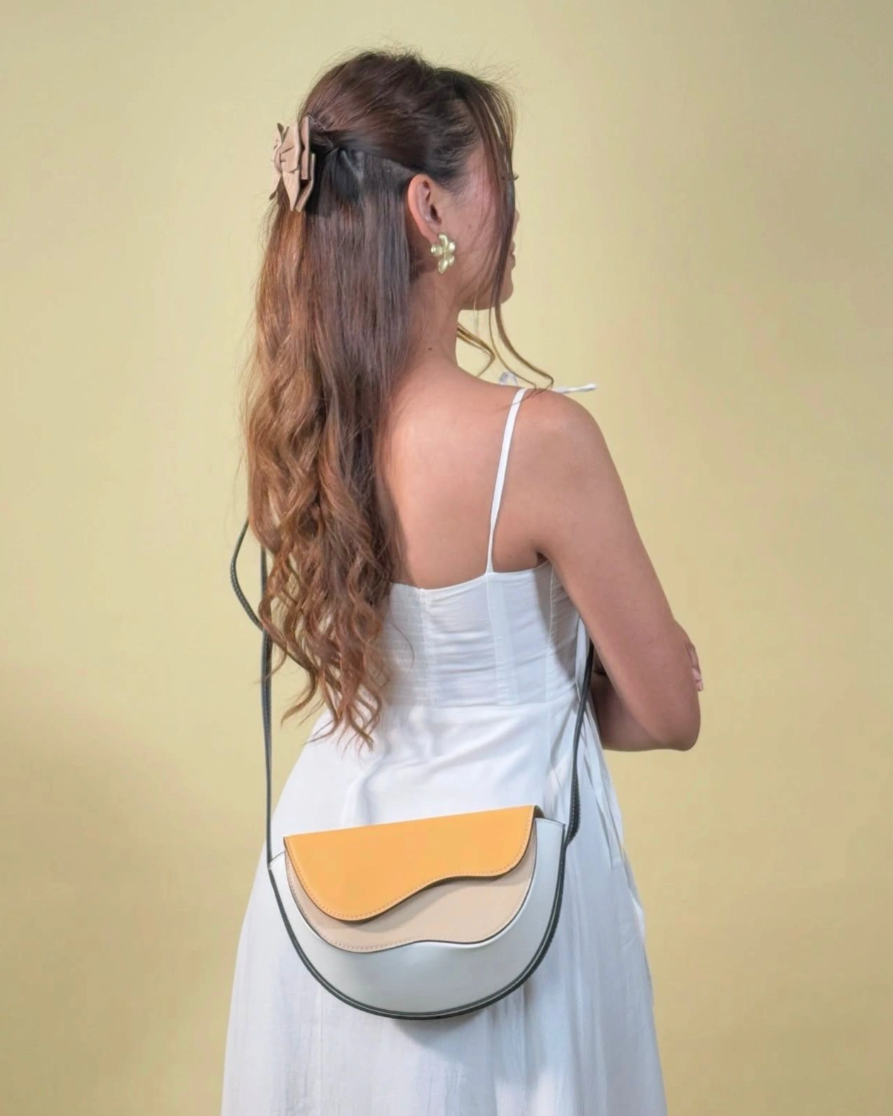 A stylish and compact bag featuring a unique wave-inspired design that adds a modern, elegant touch. It comes with an adjustable strap for comfortable crossbody wear, making it both versatile and effortlessly chic for everyday use.